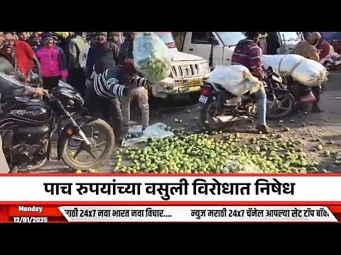 पाच रुपयांच्या वसुलीविरोधात भाजीपाला रस्त्यावर फेकून निषेध #marathinews #newsmarathi #news24marathi #newsmarathi24x7