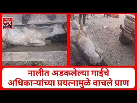 आरोग्य अधिकाऱ्यांच्या प्रयत्नामुळे वाचले गाईचे प्राण, नालीत अडकलेल्या गाईला जीवनदान #marathinews #newsmarathi #news24marathi