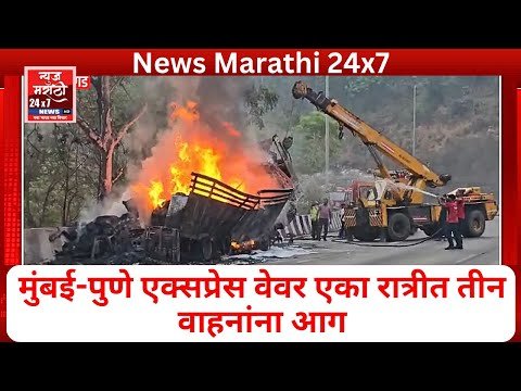 मुंबई-पुणे एक्सप्रेस वेवर एका रात्रीत तीन वाहनांना आग #marathinews #newsmarathi #news24marathi