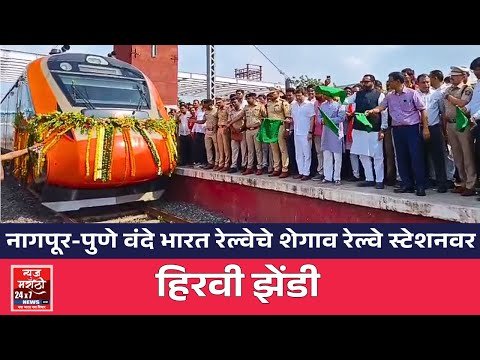 नागपूर-पुणे वंदे भारत रेल्वेचे शेगाव रेल्वे स्टेशनवर हिरवी झेंडी #marathinews #newsmarathi #news24marathi #newsmarathi24x7