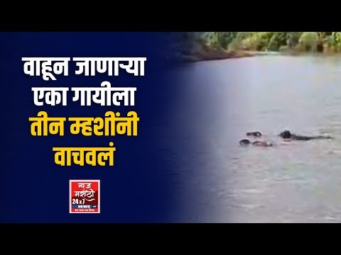 वाहून जाणाऱ्या एका गायीला तीन म्हशींनी वाचवलं #marathinews #newsmarathi #news24marathi #newsmarathi24x7