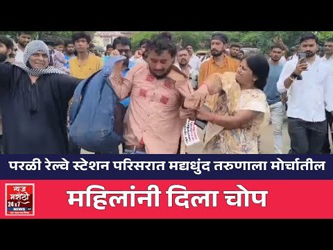 परळी रेल्वे स्टेशन परिसरात मद्यधुंद तरुणाला मोर्चातील महिलांनी दिला चोप #marathinews #newsmarathi #news24marathi #newsmarathi24x7