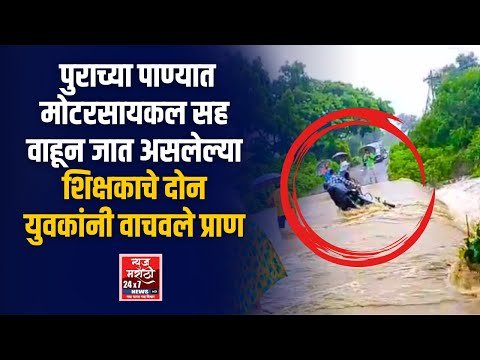पुराच्या पाण्यात मोटरसायकल सह वाहून जात असलेल्या शिक्षकाचे दोन युवकांनी वाचवले प्राण #marathinews #newsmarathi #news24marathi #newsmarathi24x7