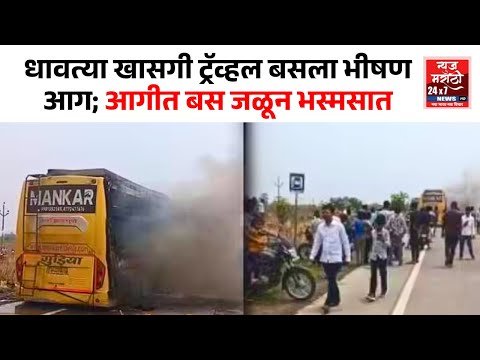 जामनेर-पहूर मार्गावर धावत्या खासगी ट्रॅव्हल बसला भीषण आग; आगीत बस जळून भस्मसात #marathinews #newsmarathi #news24marathi